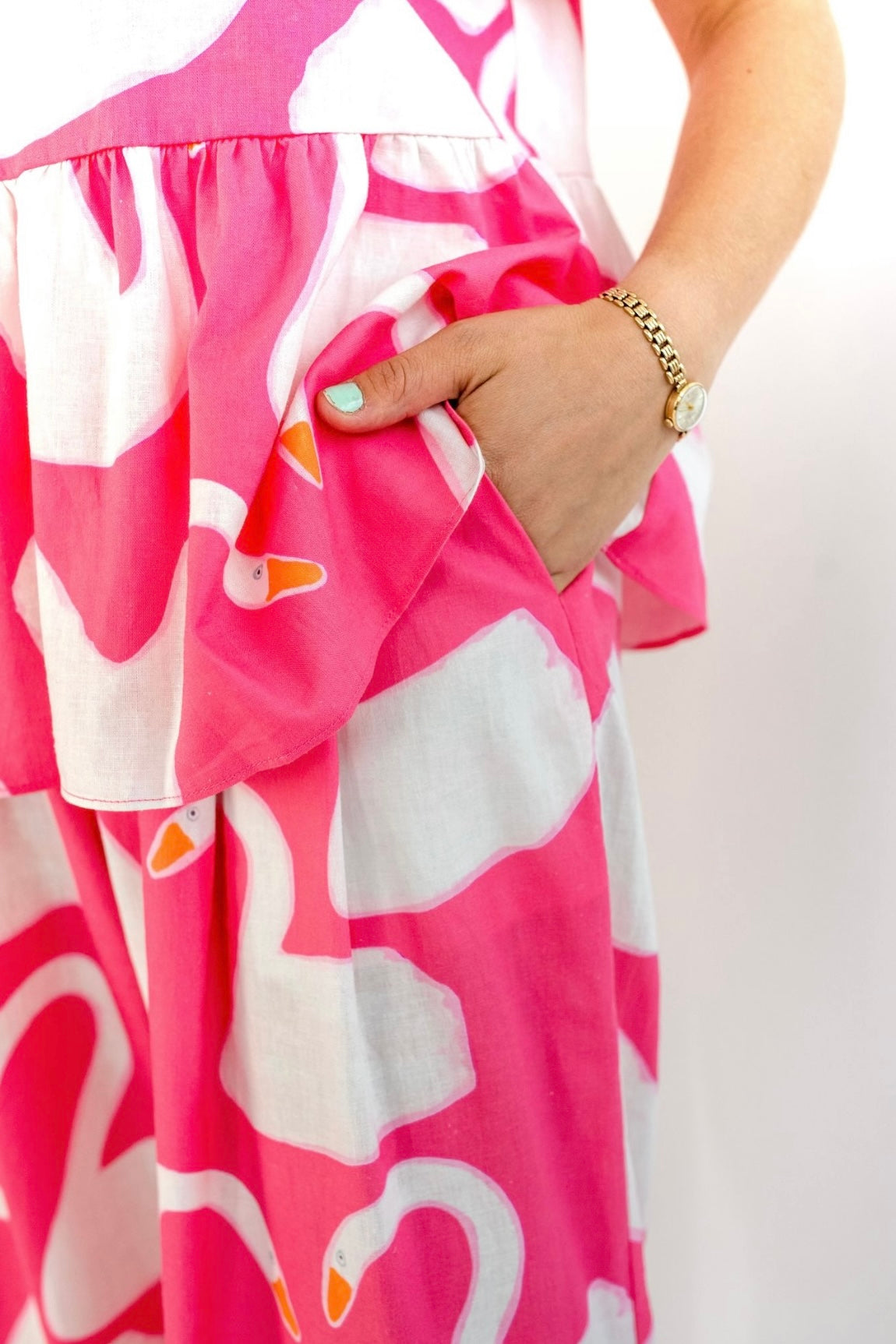 Model with Ginger hair: a size 16, which is her usual size, and she’s 172cm tall.